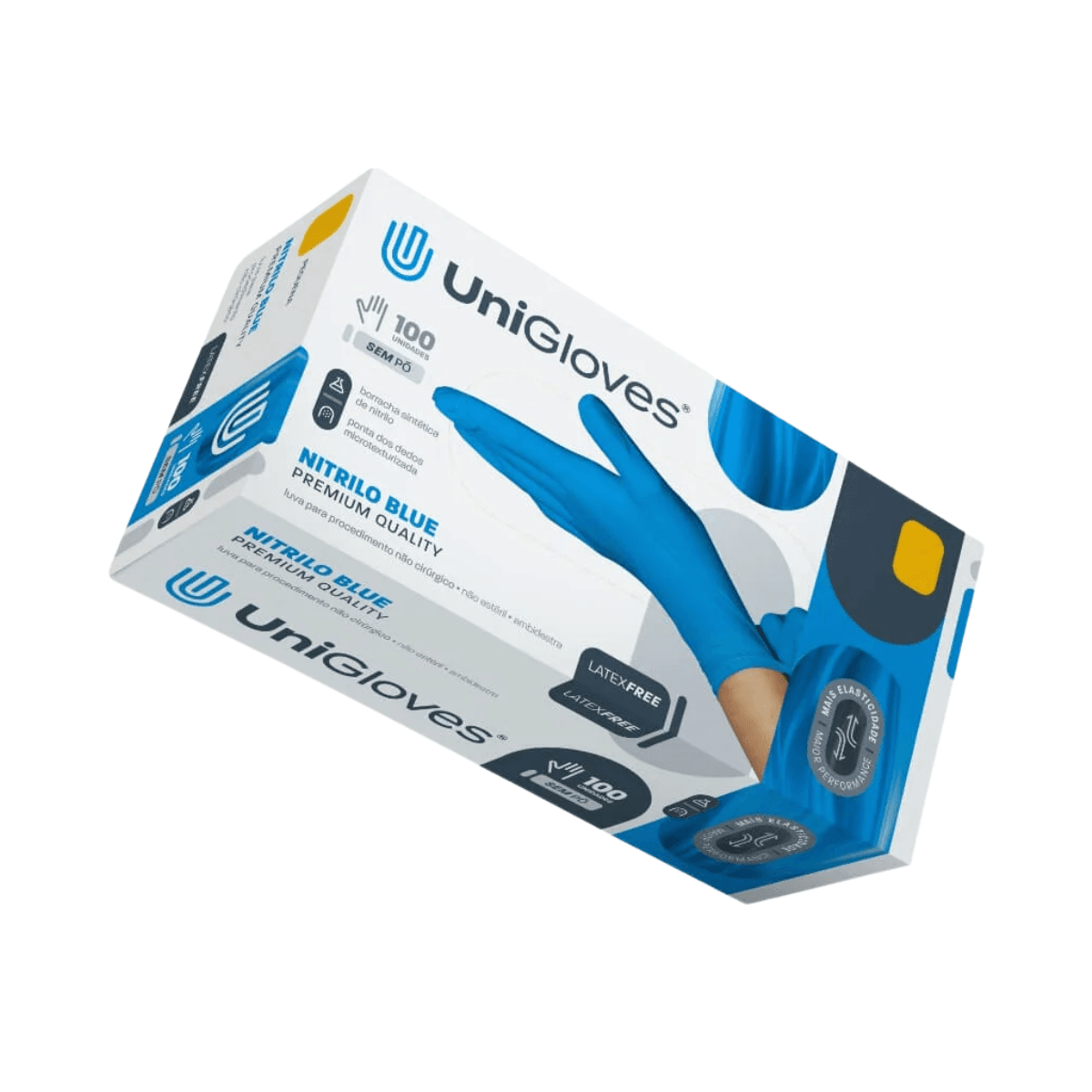 Luvas Unigloves sem pó Nitrilo Azul tam. XP/PP/P